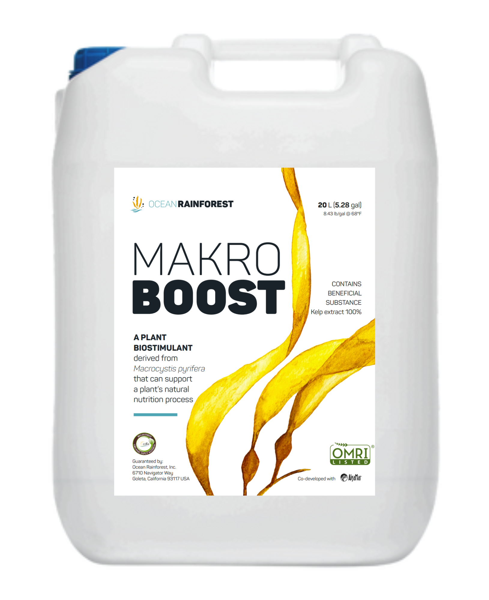 A plant biostimulant derived from Giant Kelp (Macrocystis pyrifera) that can support a plant’s natural nutrition process