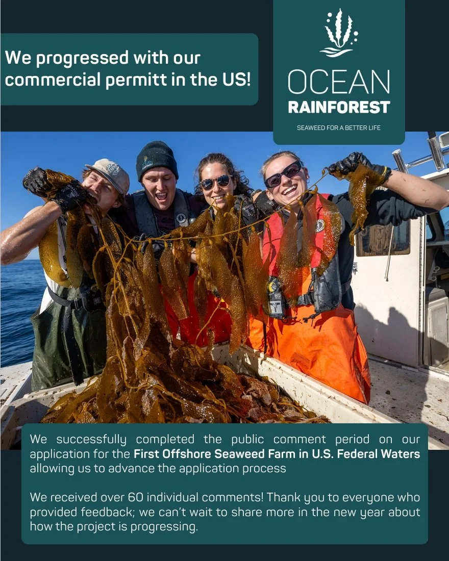 This year, we navigated the public comment period in California for the first-ever offshore seaweed farm in U.S. federal waters , hopefully clearing a path for historic permitting.
