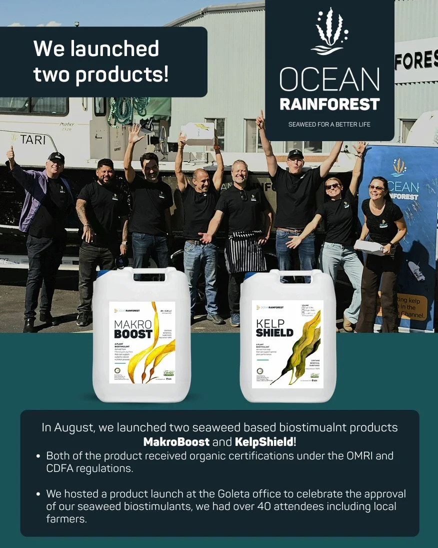 August brought the most significant milestone with the launch of our seaweed-based biostimulants MakroBoost and KelpShield earning OMRI and CDFA organic certifications .